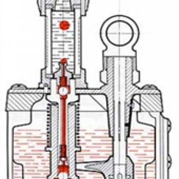 Chaque cylindre de pompe, par l'action simultanée de l'arbre à cames, et du ressort antagoniste et par le jeu normal des clapets à billes, aspire l'huile dans le carter et la refoule vers le point à graisser. A la sortie de la pompe, l'huile monte au goutte à goutte, sous pression, par différence de densité, dans le verre du tube viseur rempli d'eau.